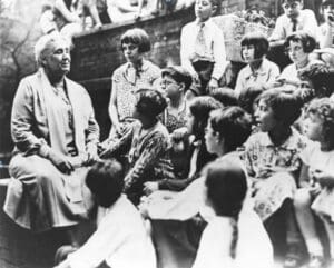 Sister Nivedita dedicated her life to the study of Hinduism and to the education of girls in India. She also nursed patients in Calcutta during a bubonic plague epidemic in 1899, and later joined Gandhi’s movement to liberate India from British rule. Sister Nivedita described Jane Addams as “a clear-headed quiet and unassuming person,” and she was so impressed with Addams’s compassion and reform work to better the lives of vulnerable people, she called Addams a karma yogi.
