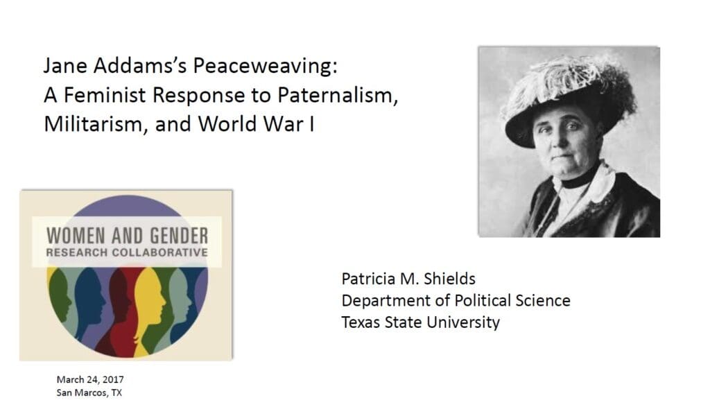 Patricia M. Shields, Jane Addams’s Peaceweaving: A Feminist Response to Paternalism, Militarism, and World War I, Women and Gender Research Collaborative, March 24, 2017.  (PDF)