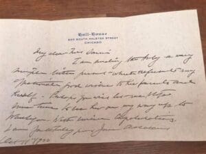 We are always looking for “new” Jane Addams documents! Some are still privately held by the descendants of Addams’s friends and correspondents, others are in archives that haven’t been cataloged or that we might have missed.