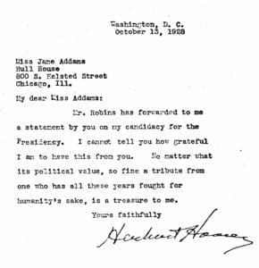 Jane Addams dedicated her life to improving the lives of vulnerable people—children, immigrants, women, and the working poor. She cared deeply about people she knew in the Hull-House neighborhood and in Chicago as well as the people she didn’t know in Illinois, in the United States, and throughout the world. She gave all her money and energy to the causes she served. Jane Addams was not driven by ego, and she lived a life of compassion and nonjudgment. She always sought to understand people on their own terms, to respect their beliefs and cultural traditions, to study the social and economic conditions that affected their health and wellbeing, and to tell the truth about the social ills she witnessed. She used her talents as an organizer, a philosopher, a public speaker, and a writer for the good of society not for personal wealth or accolades.