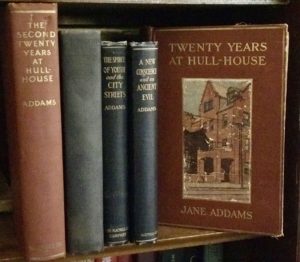 Having studied the papers of Jane Addams for four years now, I have come to see Jane Addams the woman as a distant friend. The project of collecting her books means a great deal to me. It feels a natural way to connect with her across the distance of the years between us. I am also drawn to Addams’s books because history has undervalued her contributions as an author. To most people who know of her, Jane Addams is Hull-House. She is a social worker and reformer. She is a campaigner for suffrage, for the short-lived Progressive Party, and for world peace. Indeed, all good and well deserved descriptions of her. Yet despite the fact that she published eleven books, she is rarely defined as an author, and with the exception of Twenty-Years at Hull-House, her books are not widely read or known today.