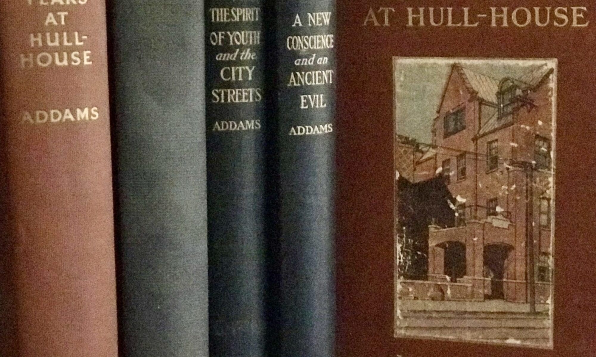 and Twenty Years at Hull-House. The condition of my copy of Twenty Years at Hull-House is a bit rough, or, perhaps, I should say that it is delicate, like Jane’s soft employment of her bold philosophical ideas in her writing. No matter. It is my favorite, partly because of the lovely etching on the cover by Frank Hazenplug and the drawings scattered throughout by Norah Hamilton, both of these artists Hull-House residents. Because of their contributions to the book, Jane Addams wrote that it was “quite a Hull-House effort.” The book is quintessential Jane Addams, beautiful in its connections to the critical reform work she conducted in Chicago, to the settlement house that made her famous, and to the extraordinary people who lived and worked with her there.